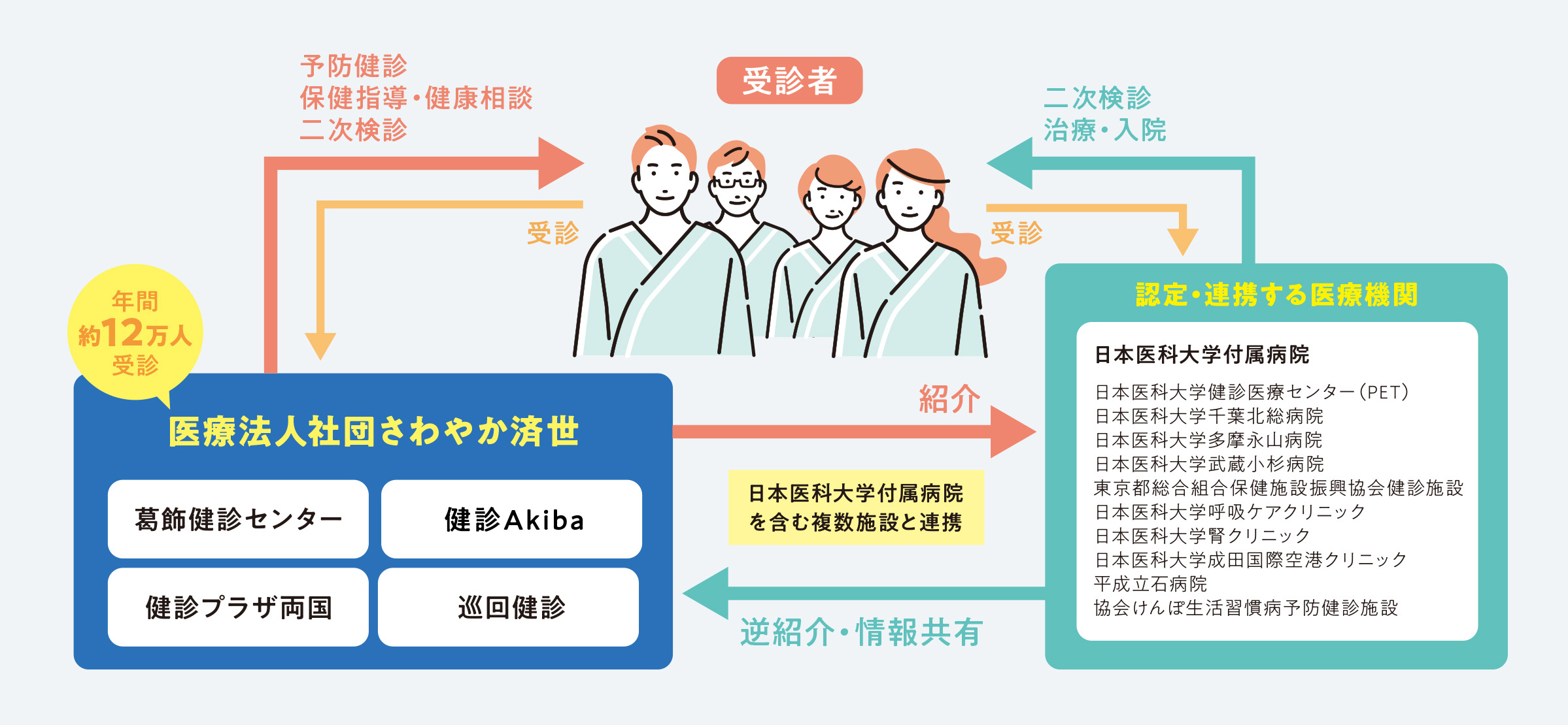 - 医療機関への紹介(日本医科大学附属病院など)